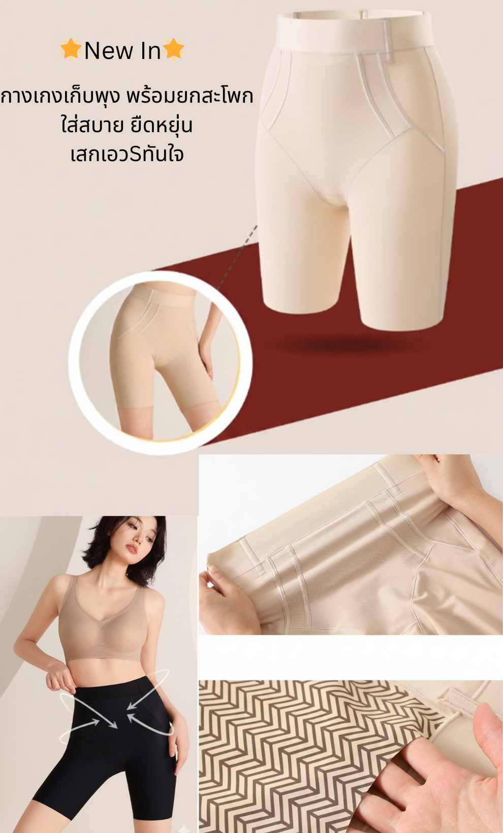 นวัตกรรมใหม่ล่าสุด กางเกงเก็บพุงทรงเอวสูงปานกลาง ขายาวเหนือเข่า ใส่สบายและยืดหยุ่น