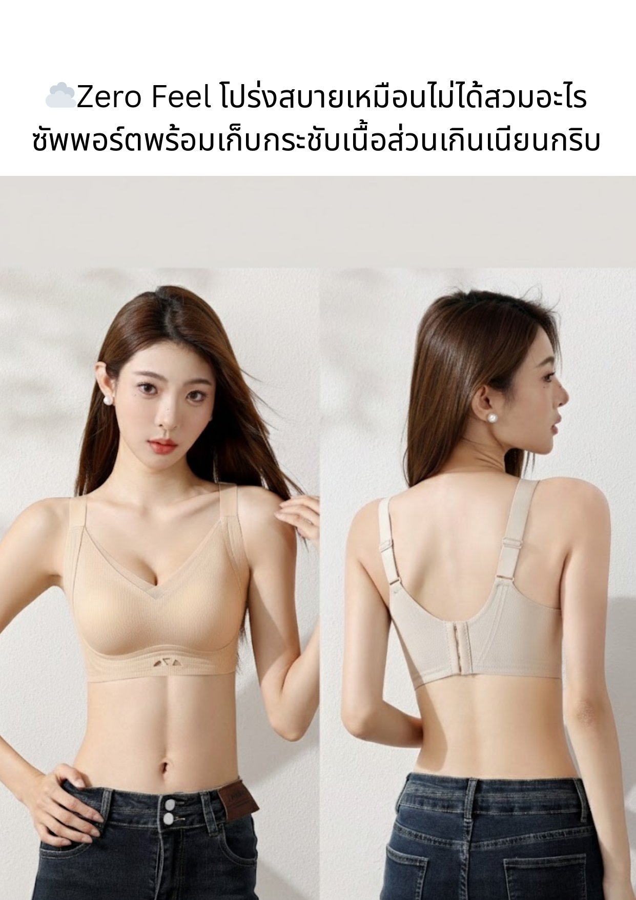 ☁️นวัตกรรม Jell-Glue: แถบเจลลี่ด้านข้างที่ออกแบบมาช่วยจัดระเบียบ และเก็บเนื้อส่วนเกินใต้วงแขนให้เข้าที่